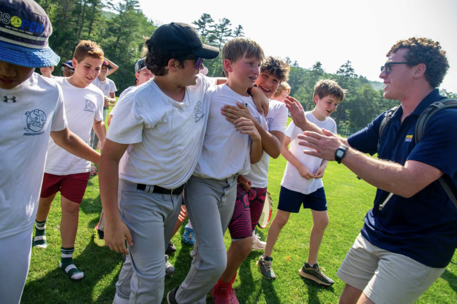 With Pemi holding a 2-1 lead and our opponents feeling some pressure, the second morning events at Pemi were incredibly competitive. The 11’s baseball team locked horns with a determined opponent on the baseball field as both teams were anchored by excellent starting pitching. Nico Aponte-Rios and Brendan Obrien pitched well for Pemi; however, a two-out Tecumseh double in the top of the fifth cleared the bases and gave our visitors a 5-2 lead. In Pemi’s last two innings, we loaded the bases with quality at-bats and intelligent base running but struggled to deliver the critical hit. An incredibly bizarre play ended the game with one out in the last inning and the boys feeling slightly anxious at the plate. An unlucky pop-up near home plate was correctly ruled an ”infield fly; the batter is out” on a ball barely in fair territory but dropped by the Tecumseh fielder and rolled foul. With the crowd’s roar, no one could hear the call as the ball bobbled by three Tecumseh players converging to make the play. Pemi’s runner advanced, trying to avoid a force out at home. Pemi’s runner was tagged at home for a game-ending double play. In my 30-plus years of coaching, I have never had this sequence play out in this dramatic fashion, and I bear responsibility for unnecessarily sending the player home. Never too late to learn from your mistakes.
