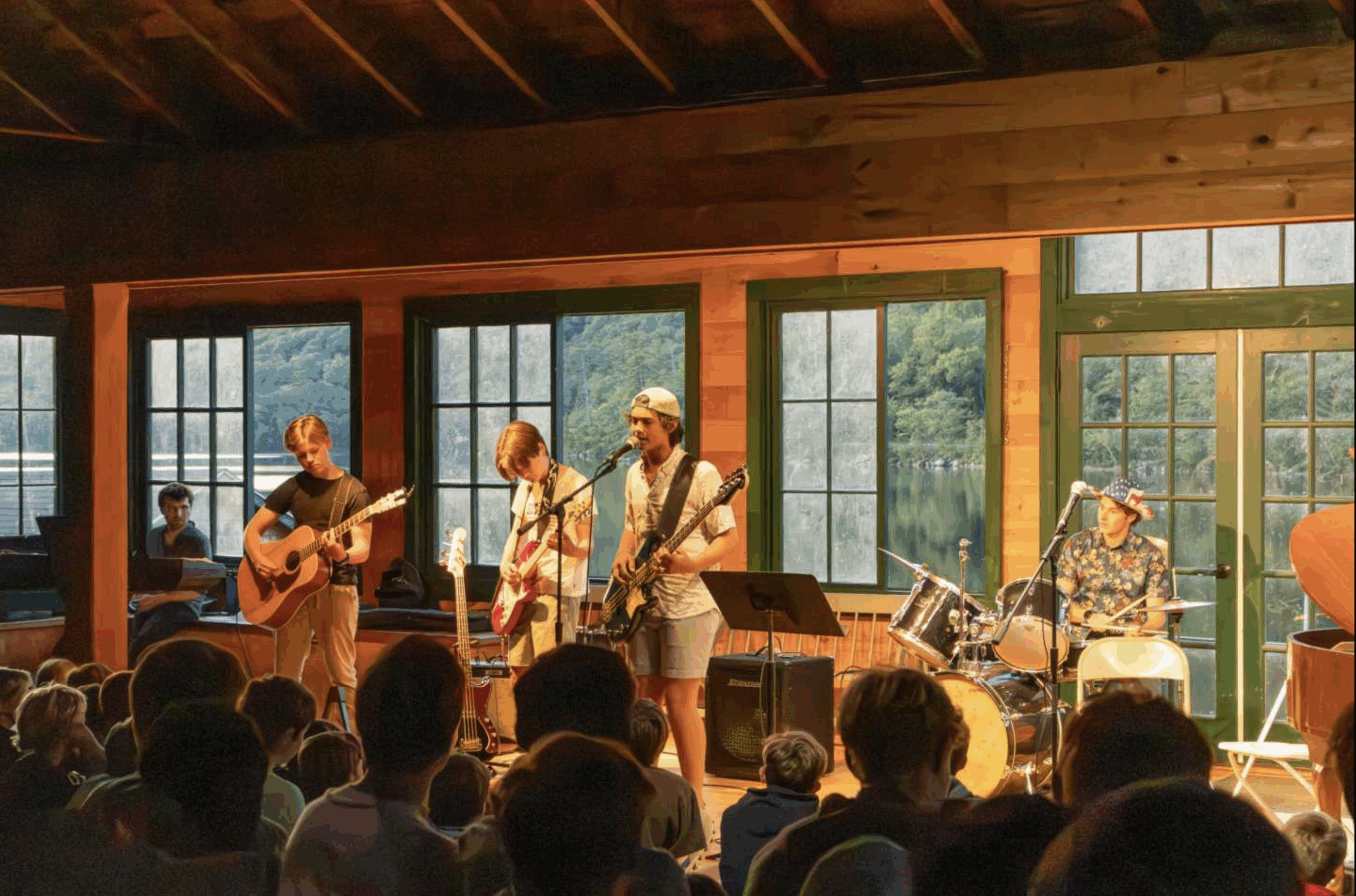 With all due appreciation and respect to these acts, however, the highlight of the show unequivocally came from a group of 15s, accompanied by assistant counselor Leo Ventimiglia on the drums. Connor Smillie (acoustic guitar), Manfred Creane (electric guitar), and Bryce Madom (bass and lead vocals) performed The Strokes’ Last Nite. I’ll admit that I’m occasionally prone to using superlatives somewhat liberally in these newsletters. While I stand by my descriptions of excellence that we see so frequently here at Pemi, I worry that simply using my typical language to describe their performance would do it a massive injustice. It was, quite simply, the cleanest, best rehearsed, and most technically sound Vaudveille performance by a band that I’ve seen at Pemi. The boys put on a masterclass, and the audience responded appropriately with rapturous applause at the end. They’ve set a new bar for Pemi music.